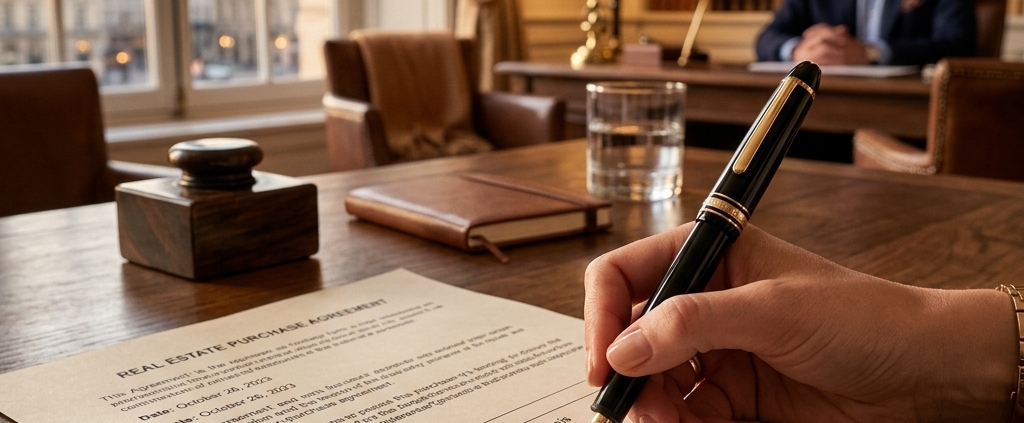 Wenn alle Klauseln verlesen sind und totale Einigkeit herrscht, unterschreiben zunächst der Verkäufer und der Käufer mit Füller, und schließlich beglaubigt der Notar den Akt mit seinem eigenen Siegel und Unterschrift. Ab diesem Moment ist der Vertrag absolut rechtsbindend. Den Rest – Löschung alter Grundschulden, Meldung ans Finanzamt – übernimmt nun das Notariat im Hintergrund.